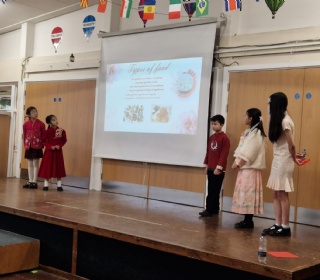 The children also shared which zodiac animal represents this year and what it symbolises. It was wonderful to see them speak so confidently and proudly about their heritage, and to see the rest of the school listening so respectfully and with great interest.
